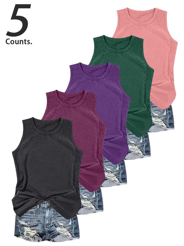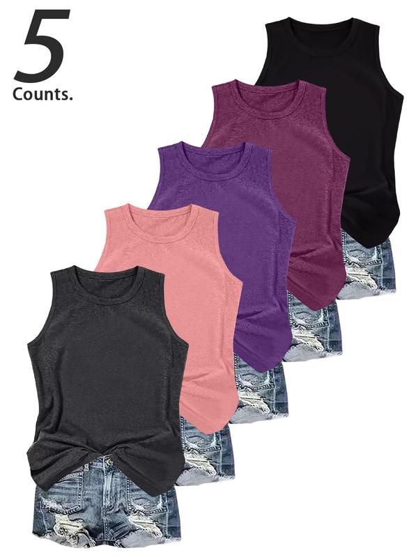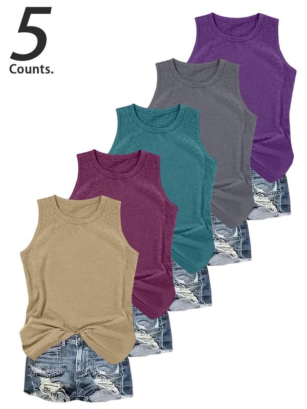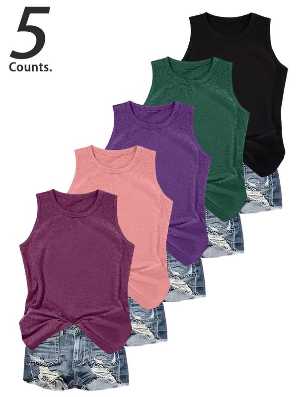 5-Pack Women's Sleeveless Tank Tops – Casual Round Neck Shirts for Daily Wear